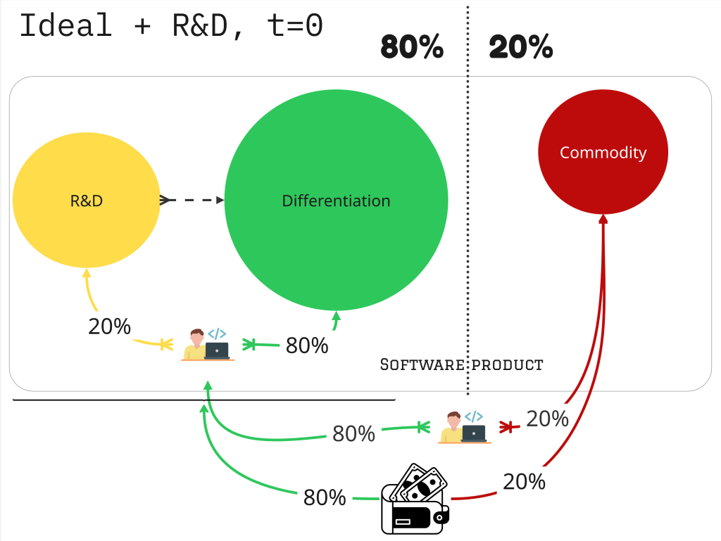 Until now, the focus has been on managing resources for commodity software. With this drawing, I connect co-creation in commodity software with the company’s R&D efforts.