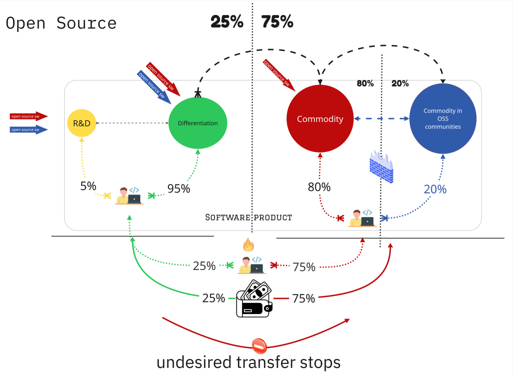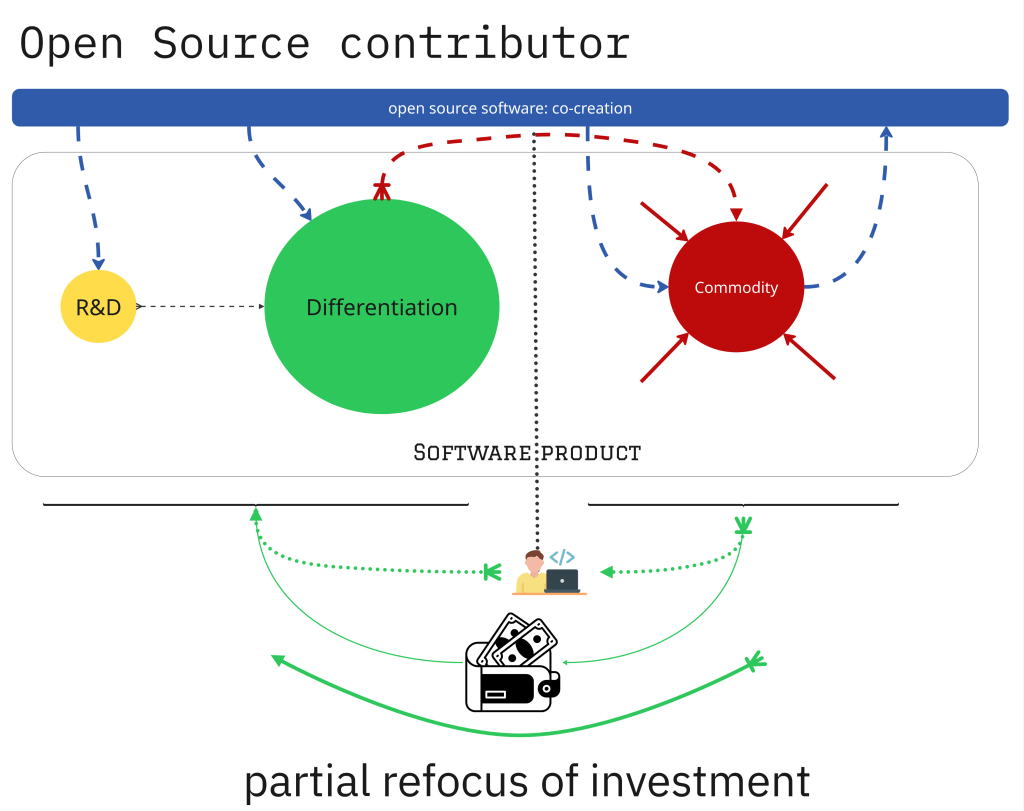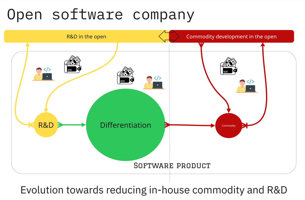 - Outsourcing “the open source way” — paying companies to co-create the needed (commodity) software in open source projects
