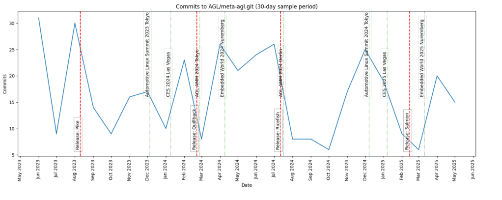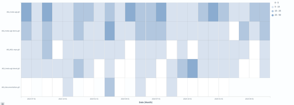 In the first article of this series, I introduced the Business Intelligence journey we started with Automotive Grade Linux (AGL) and explained the goals of the study. In the second article, we analysed the structure of the AGL community. We looked at who contributes, how organizations participate, and how the ecosystem is shaped. Now we move to the next step: code activity.