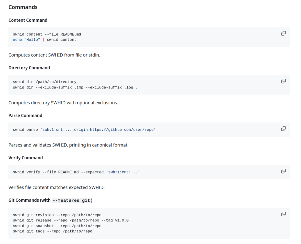 I extracted this image from software Heritage images gallery. It summarises how you can use swhid-rs