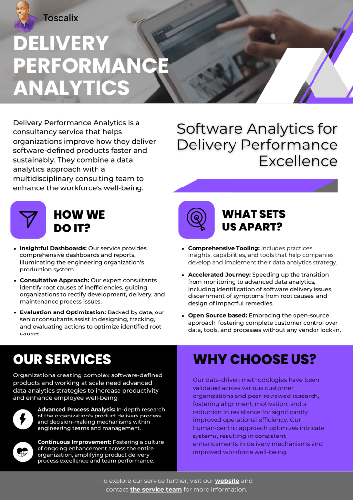 - Advanced Data Analytics for Delivery Performance Excellence. Jan’24 by George Link (Bitergia)